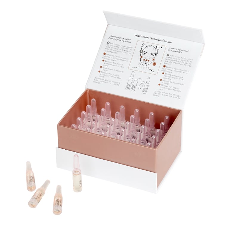 Hyaluronic Fermented Serum s’utilise matin et soir sous votre soin habituel. Cassez l’ampoule en deux et appliquez-le selon le rituel de l’Automassage Ancestral® au moins une fois par jour, en prenant le temps d’observer les lignes de votre visage. Il peut également être utilisé au cours de la journée sous forme de dose éclat. Une ampoule cassée peut être refermée et réutilisée le lendemain.